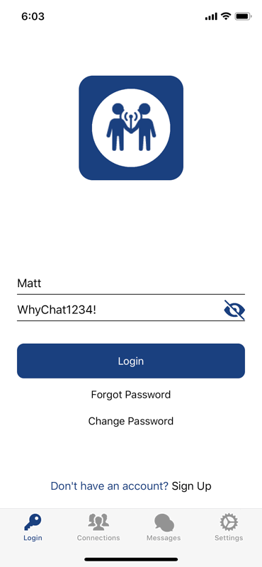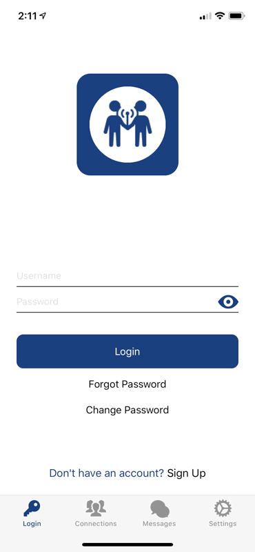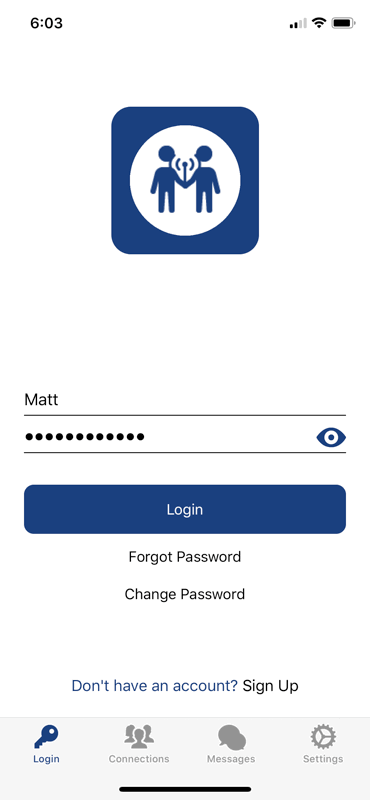 The orange connection icon indicates that you are attempting to connect to the first device advertising the same group name specified in the Settings but so far it hasn't found anyone. This also indicates that you are actively advertising your device for other users to connect to.