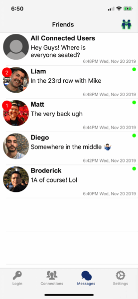 In the received messages section, you will see the messages from you in a dark color and the messages from other users in a light color. Messages not from you will also show the username of the sender above the message. The date of the message will be shown below the message along with the confirmation of whether the messages were: Sent, Delivered, or Read.